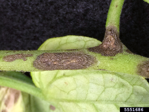 این قارچ بر روی ساقه لکه های سیاه فرورفته ای را ایجاد میکند که منجر به شانکر میشود و سپس در کل ساقه گسترده میشود.