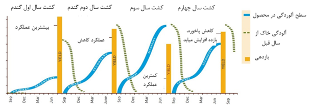 پس از دو محصول حساس گندم، مقدار بیماری بیشتر از گندم دوم، است.